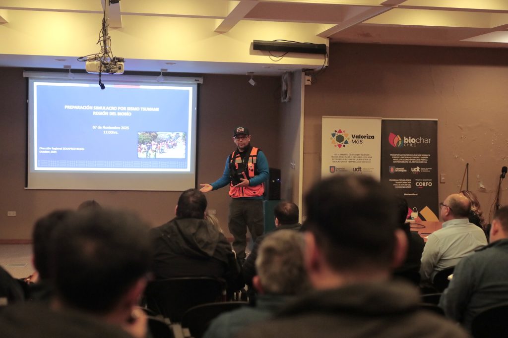 La instancia, desarrollada el viernes 10 de octubre en dependencias de la Unidad de Desarrollo Tecnológico (UDT), fue convocada por la Directora (S) de SENAPRED Biobío, en conjunto con la Unidad de Riesgos y Desastres de la Ilustre Municipalidad de Coronel, a través del Oficio N°300 “Refuerza programación simulacro regional sismo-tsunami del borde costero”.
